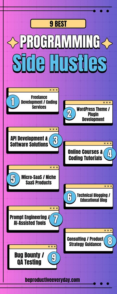 When done right, this creates recurring revenue with relatively low maintenance, making it one of the most scalable programming side hustles.